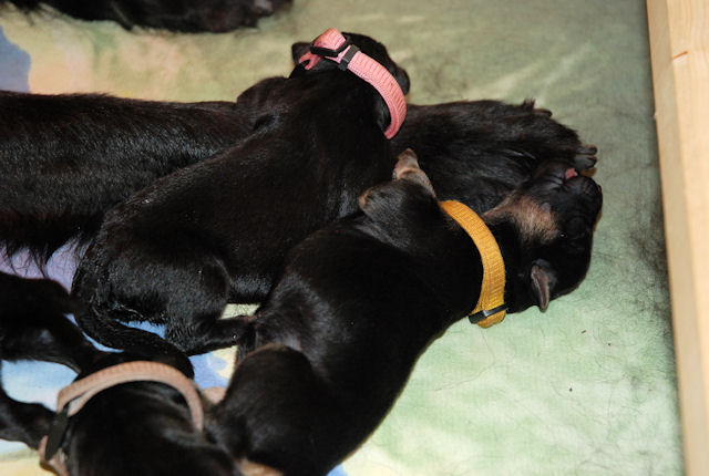 1 Rüde und 7 Hündinnen in schwarz und schwarz-braun