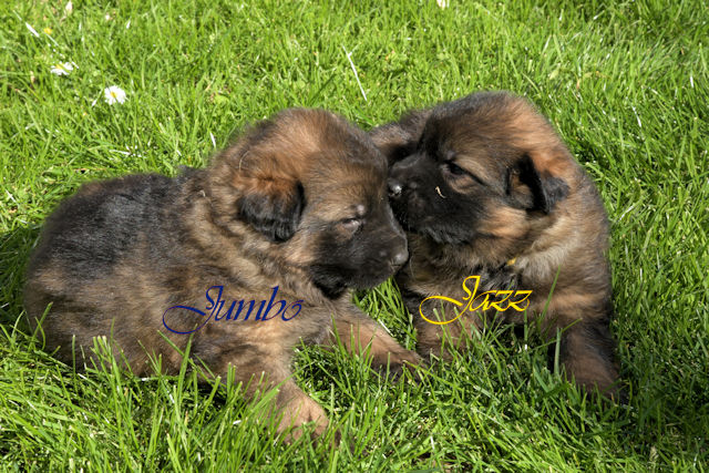 2 Rüden und 3 Hündinnen in schwarz-braun und grau-braun gewolkt